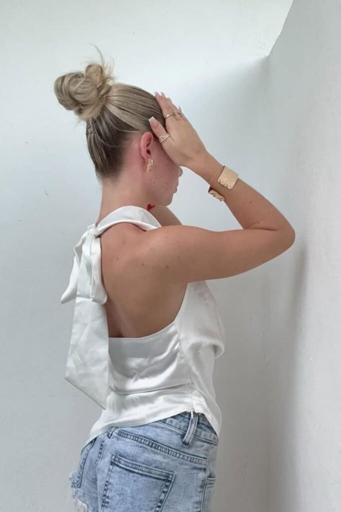 The casual sleek bun is simple and wearable. Hair is brushed back cleanly and gathered into a low or mid bun. The finish is smooth, but not overly tight or shiny. This makes it perfect for daily wear.