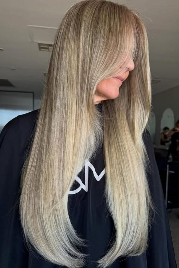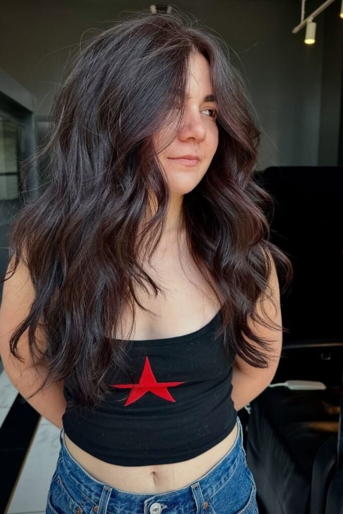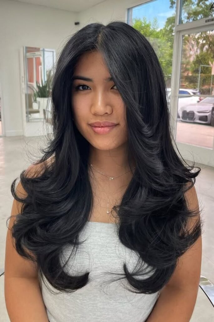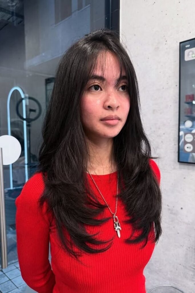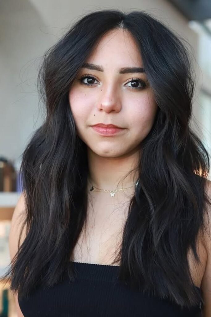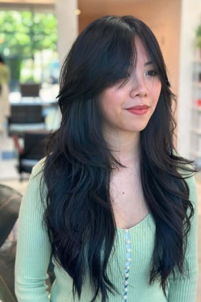 This style works well for straight, wavy, and lightly curly hair. It also grows out smoothly, which means fewer salon visits. Long layers help thick hair look polished instead of heavy.