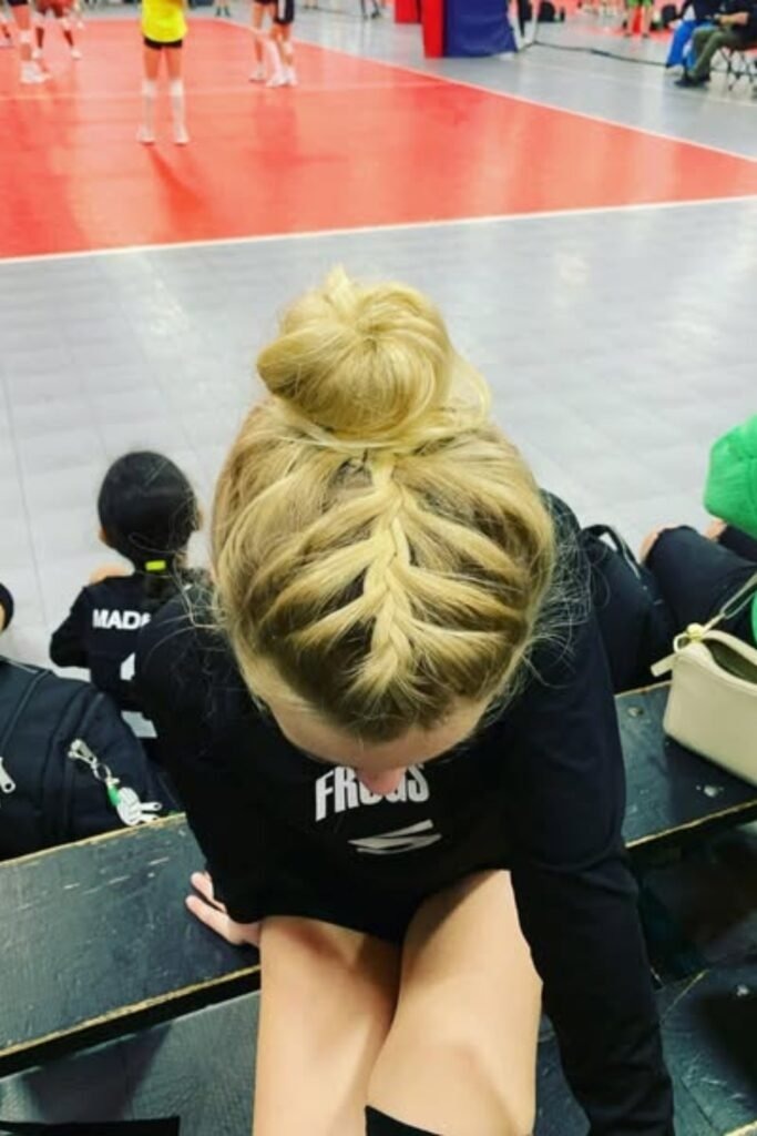 The Sleek Side-Braid Low Bun is a polished option that is both professional and practical. Hair is braided along one side and gathered into a low bun at the nape. This keeps the hair secure while allowing easy movement. It is especially suitable for indoor volleyball, where constant jumping and sudden movements can make loose styles fall apart.