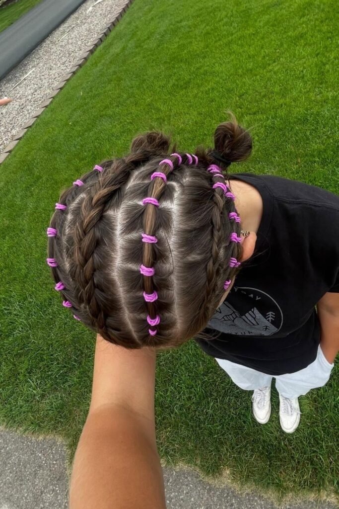 Adding color to volleyball hairstyles is a growing trend in 2026. Color-Linked Braided Rows involve creating small, tight braids along the scalp and linking them with colored hair strands or ribbons. These braids are then pulled into a ponytail or bun. This style provides extra grip and a unique aesthetic, making players stand out during games while maintaining control over their hair.