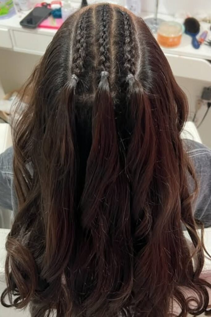 For a more detailed and creative look, the Mini-Braid Lift Back Style uses multiple small braids that start at the front hairline and lift back towards the crown. These braids are pinned or tied to create volume and texture, while the rest of the hair is pulled into a low ponytail. This style is effective for medium-length hair and provides a secure hold without the need for heavy products.