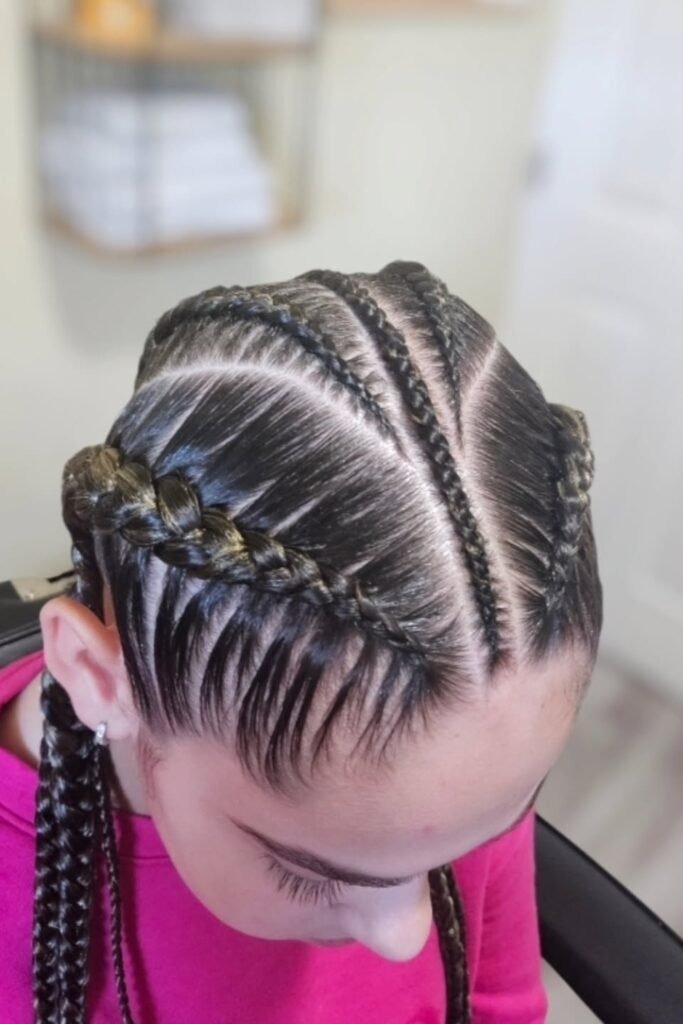 Cornrows are a timeless choice for athletes, and the Tight Cornrow Power Braids style emphasizes both strength and control. Hair is tightly braided against the scalp in straight lines, leading into a ponytail or bun. This method keeps hair completely in place, minimizes tangling, and is suitable for all hair types. It also allows for added hair accessories without affecting the grip of the style.