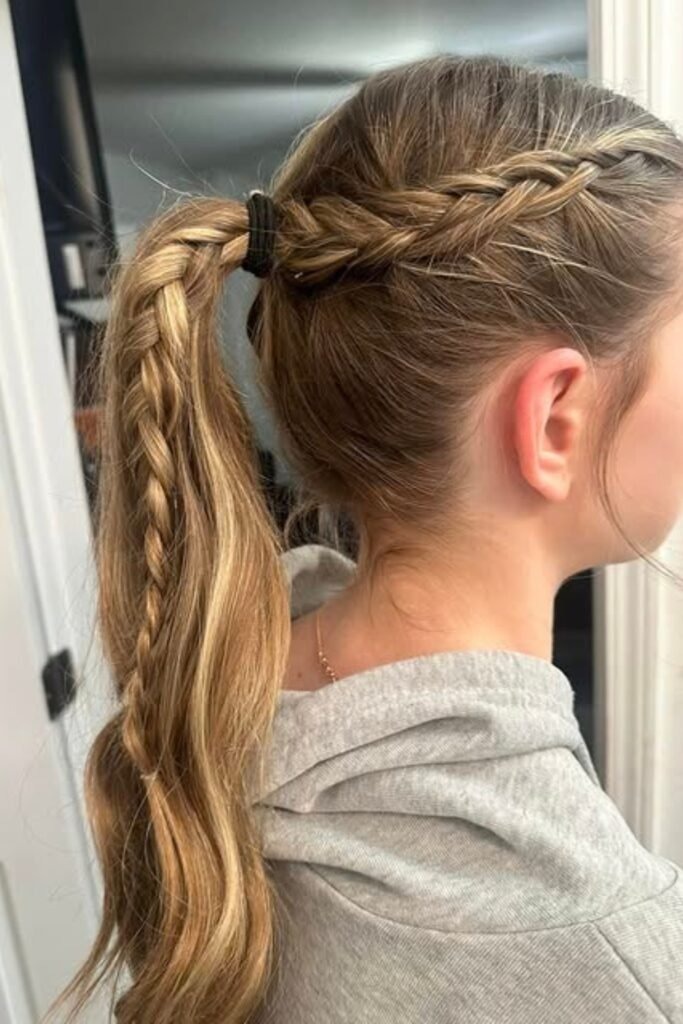 The Swirl-Braid Anchor Pony starts with a braid that spirals around the crown before tying into a high ponytail. This style is excellent for long hair that tends to shift during games. The swirl braid acts as an anchor, ensuring that the ponytail stays secure and reduces the risk of loose strands interfering with performance.