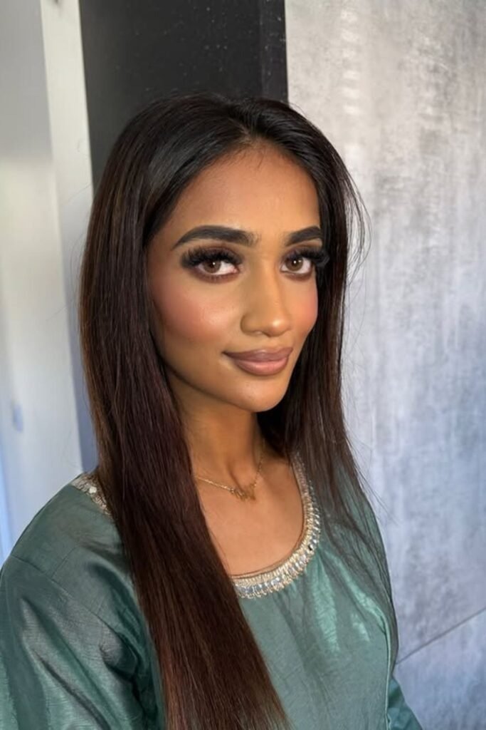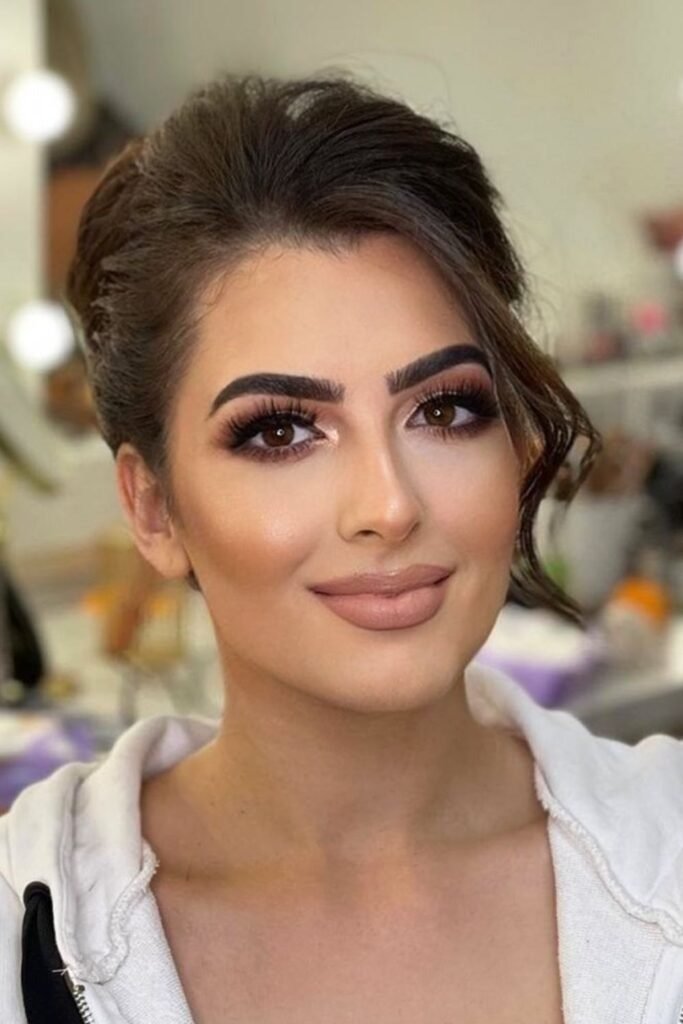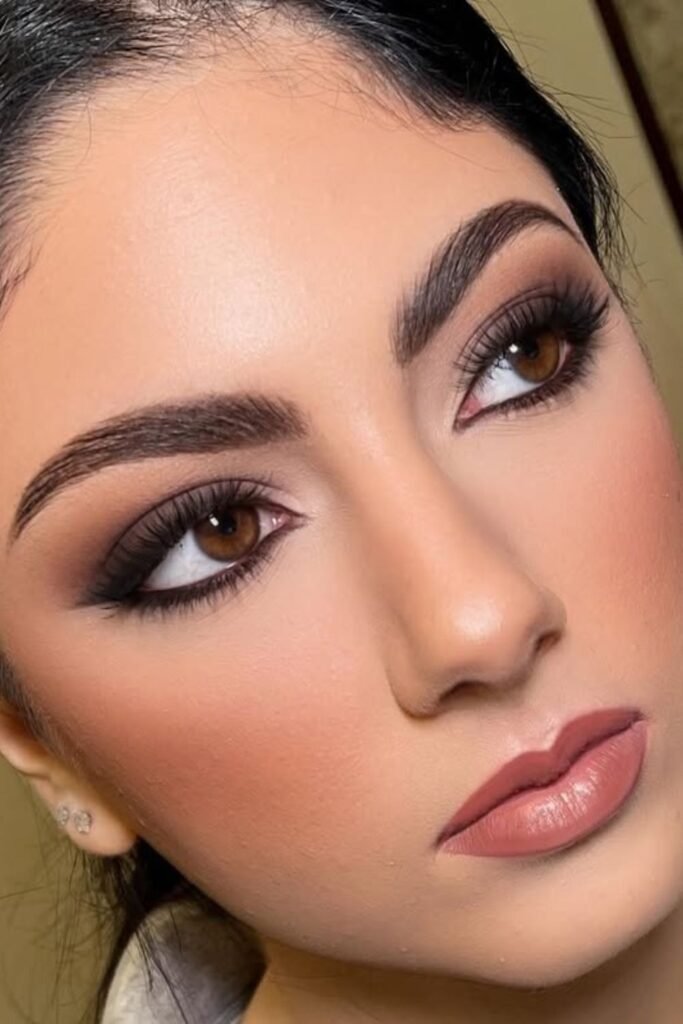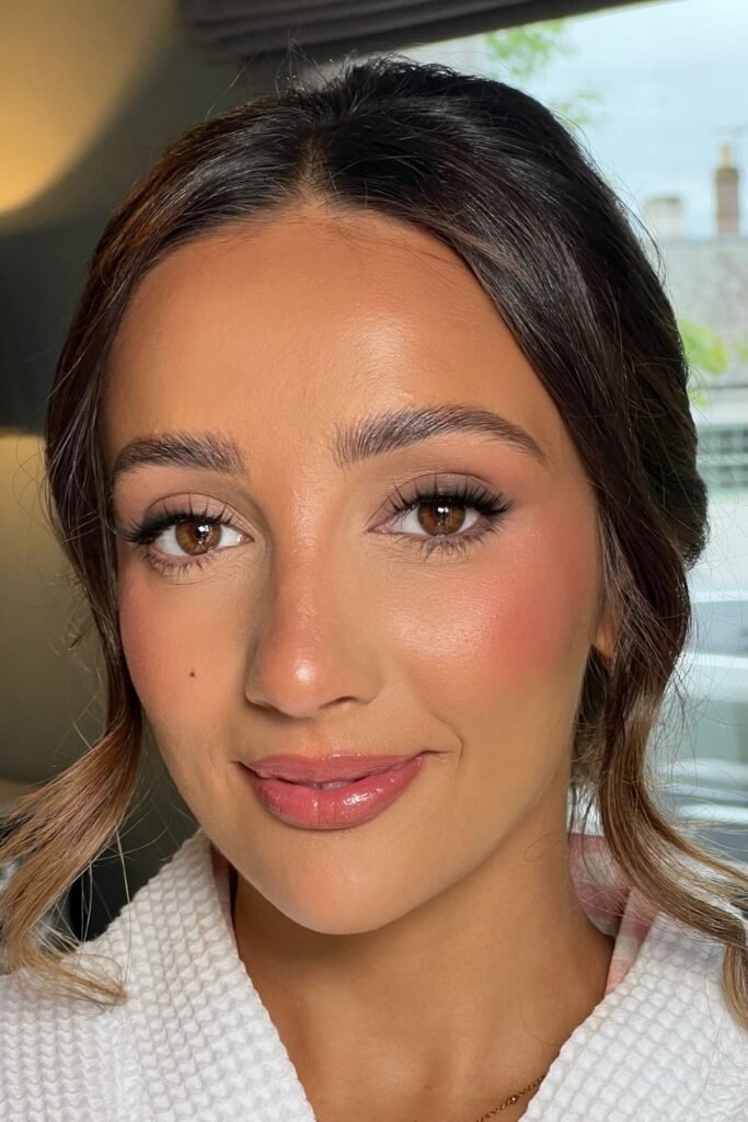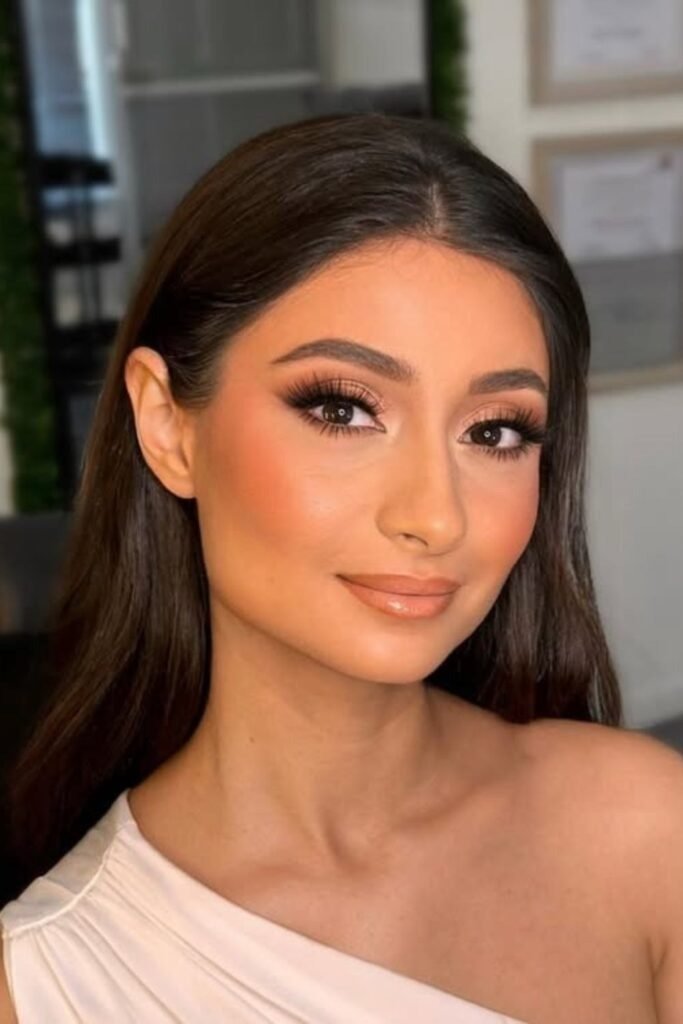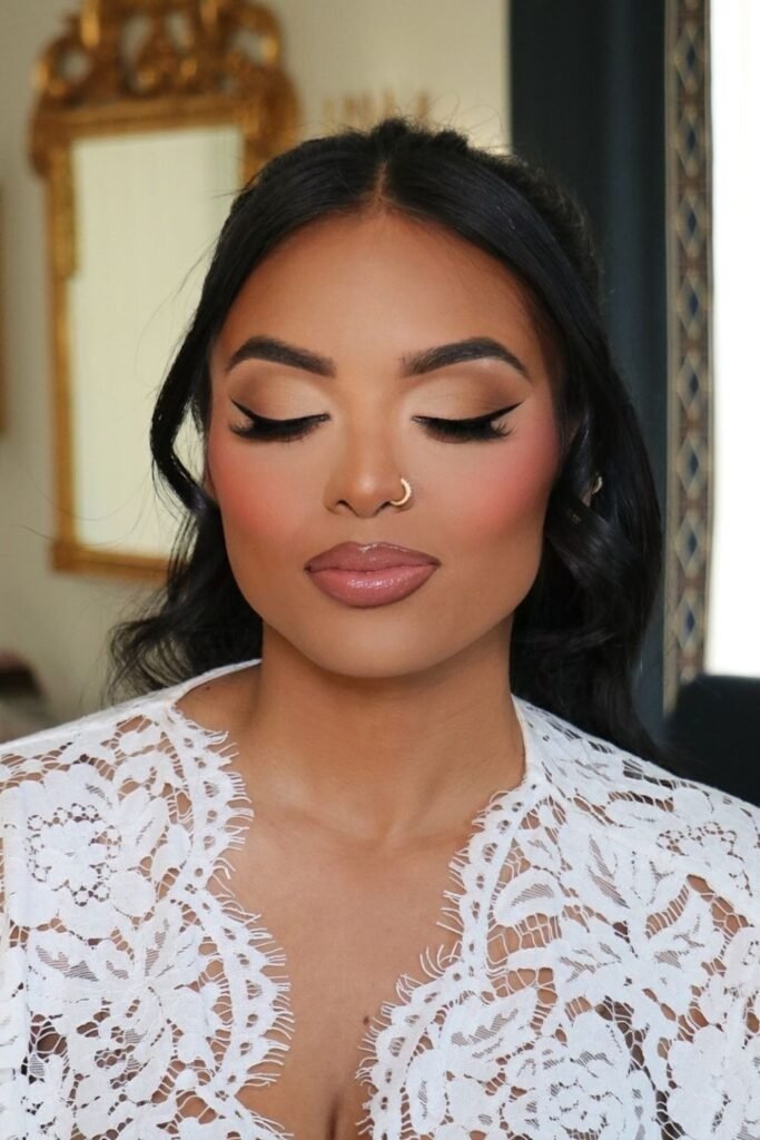 This look is ideal for brides who want natural wedding makeup for brown eyes. It enhances without looking too done.