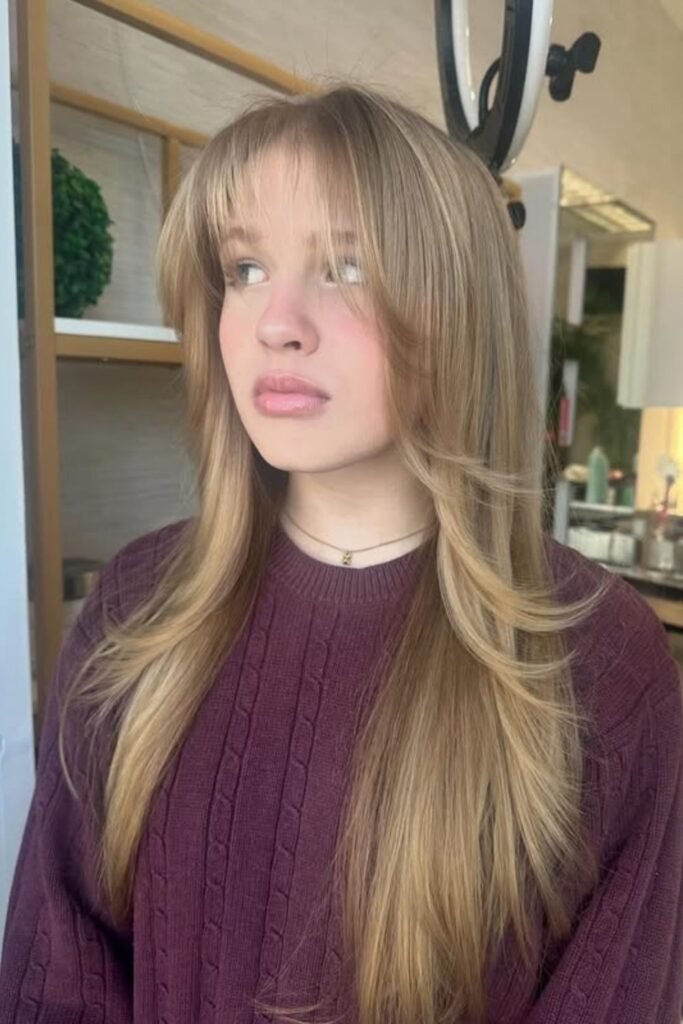 Many people think bangs are high work. Wispy bangs are the opposite when cut right. They blend into long hair instead of sitting like a hard line. This makes them easier to style, easier to grow, and easier to live with. In 2026, people want hair that looks good without stress. That is why this look keeps winning.