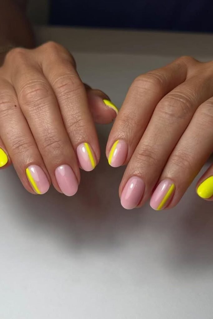 Lemon edge lines are thin yellow lines placed along the sides or tips of the nail. This design is clean and very wearable. The yellow is not the main focus but a detail that adds life.