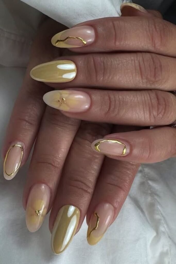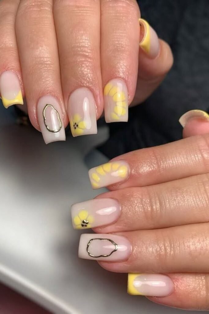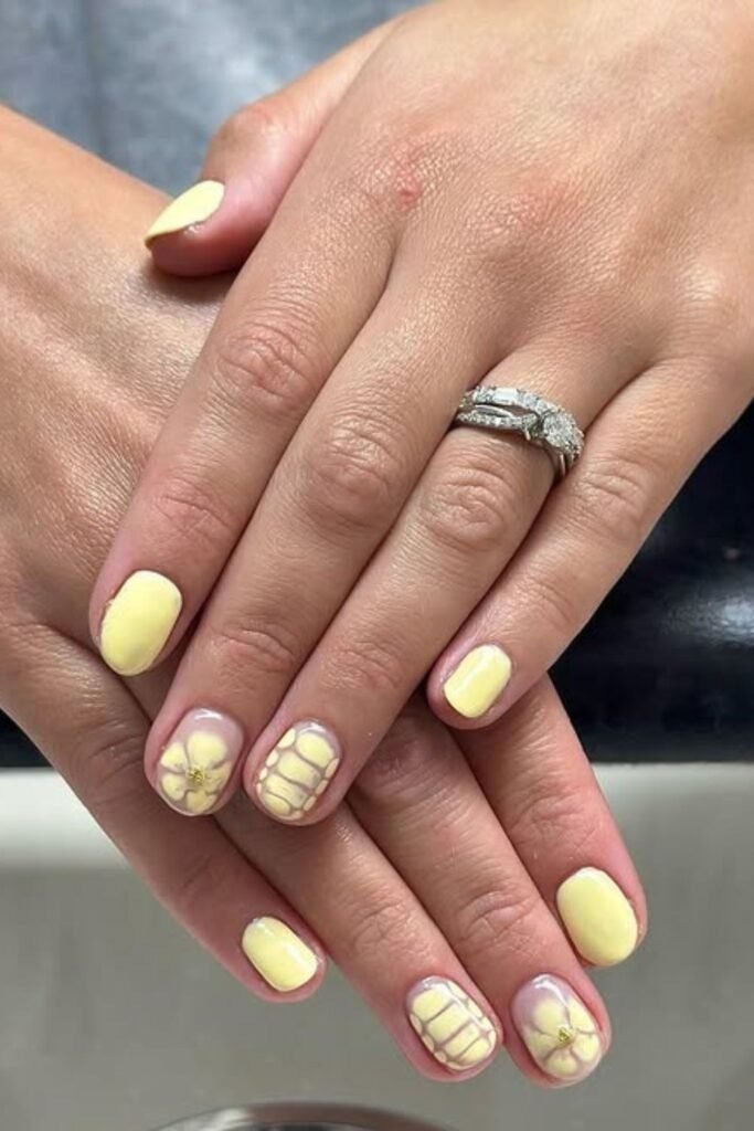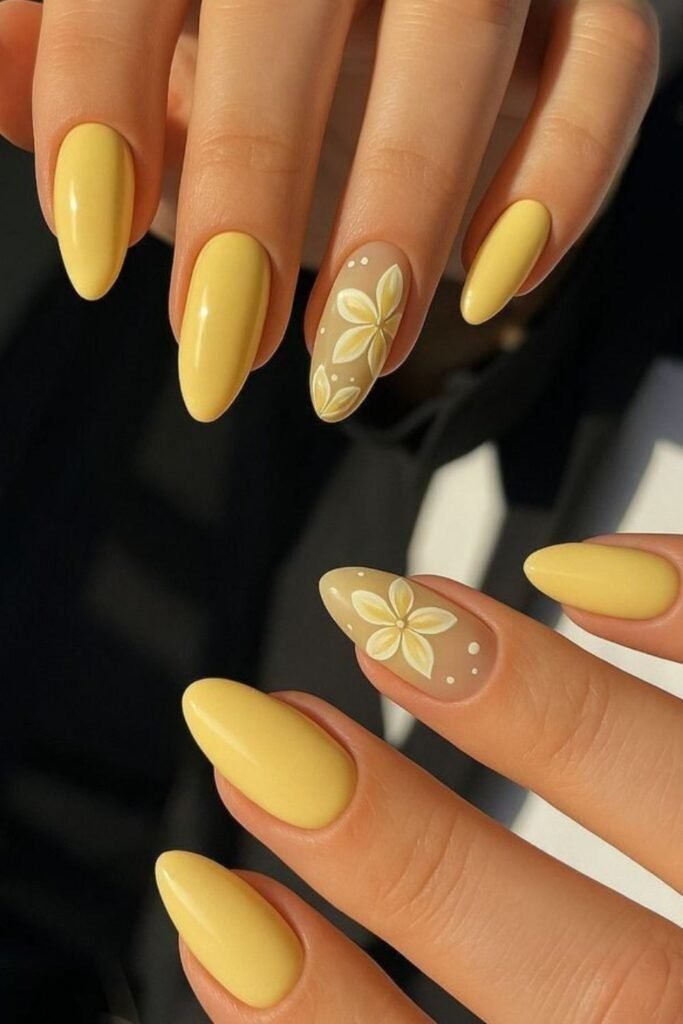 This style fits spring and summer but also works year-round if the yellow shade is muted. It looks good on short and medium nails and feels cheerful without looking childish.
