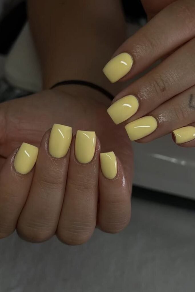 This idea is great for people who want yellow nails for work or daily wear. It looks neat, modern, and works well with square or almond shapes. Pale lemon shades work best here.